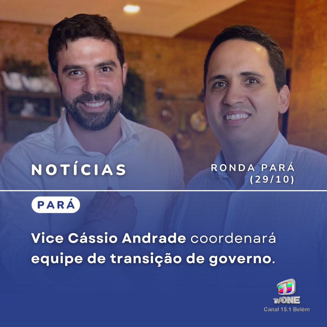 A escolha foi feita, na manhã desta terça-feira (29/10), pelo prefeito eleito Igor Normando. Informações solicitadas pelo coordenador da equipe de transição devem ser fornecidas, por lei, por membros do atual governo. Cássio Andrade, que assumirá o cargo de vice-prefeito em 01 de janeiro de 2025, comentou que "essa transição faremos de forma harmoniosa, respeitando sempre o interesse público. É uma passagem de bastão onde vamos assumir em janeiro e dar continuidade no que já está sendo feito, além de melhorar e implantar novos projetos para Belém, que será a capital da COP 30". Mais notícias em primeira mão você acompanha no site www.tvone.com.br e no programa Ronda Pará (Segunda à Sexta, 11h30), na tela da One 15.1!