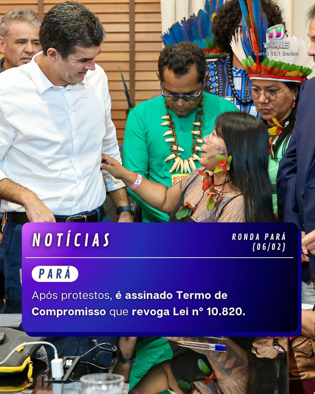 O governador Helder Barbalho, juntamente a representantes do Sindicato dos Trabalhadores em Educação Pública do Pará (Sintepp) e lideranças indígenas, quilombolas e ribeirinhas assinaram o termo.