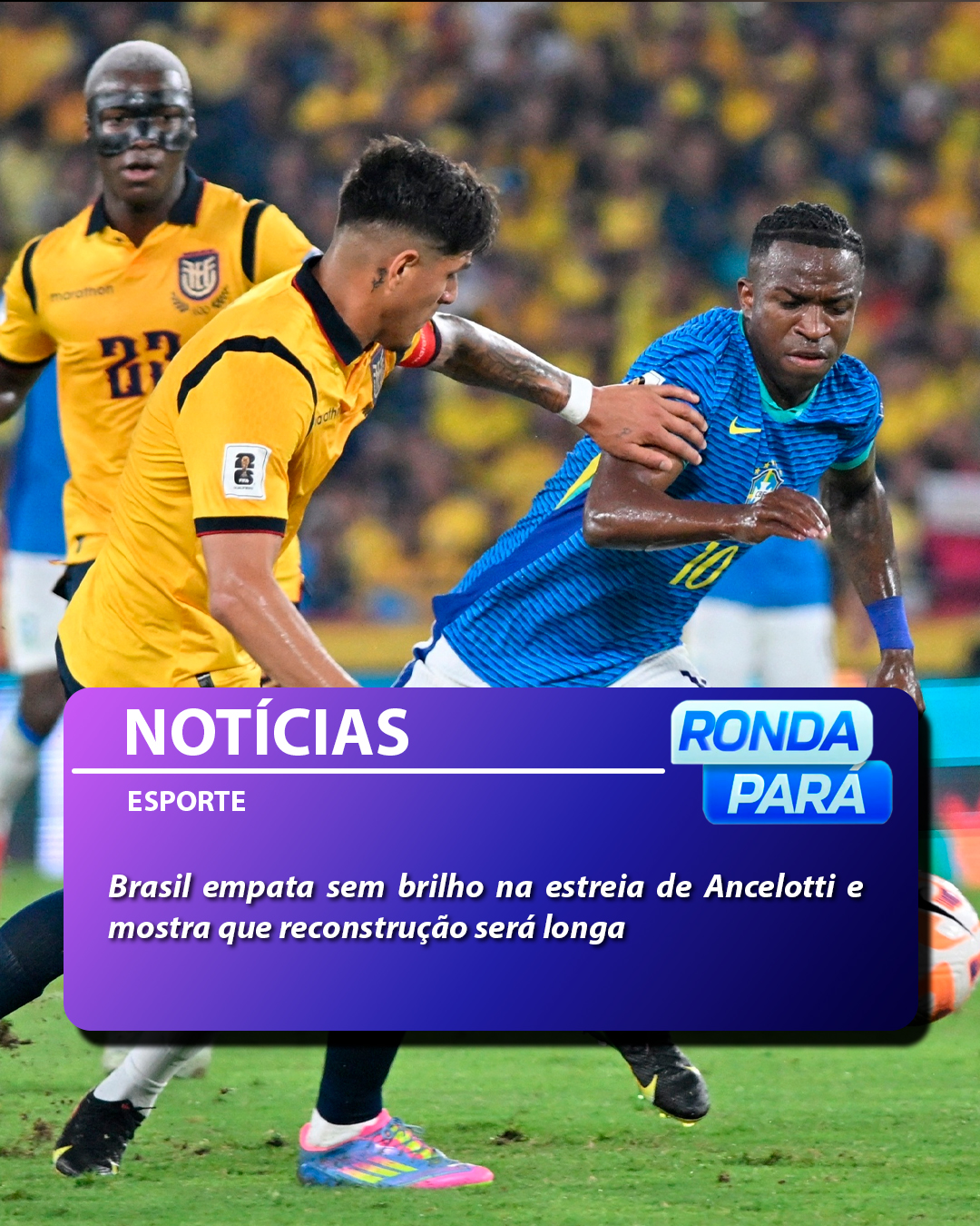 Na estreia de Carlo Ancelotti como treinador da Seleção Brasileira, o Brasil ficou no empate sem gols com o Equador, nesta quinta-feira (5), em Guayaquil, pelas Eliminatórias Sul-Americanas para a Copa do Mundo de 2026. Em campo, pouco se viu da esperada transformação prometida pela chegada do consagrado técnico italiano. O que se viu foi um time burocrático, com velhos problemas, e que ainda carrega as marcas das passagens anteriores de Ramon Menezes, Fernando Diniz e Dorival Júnior.